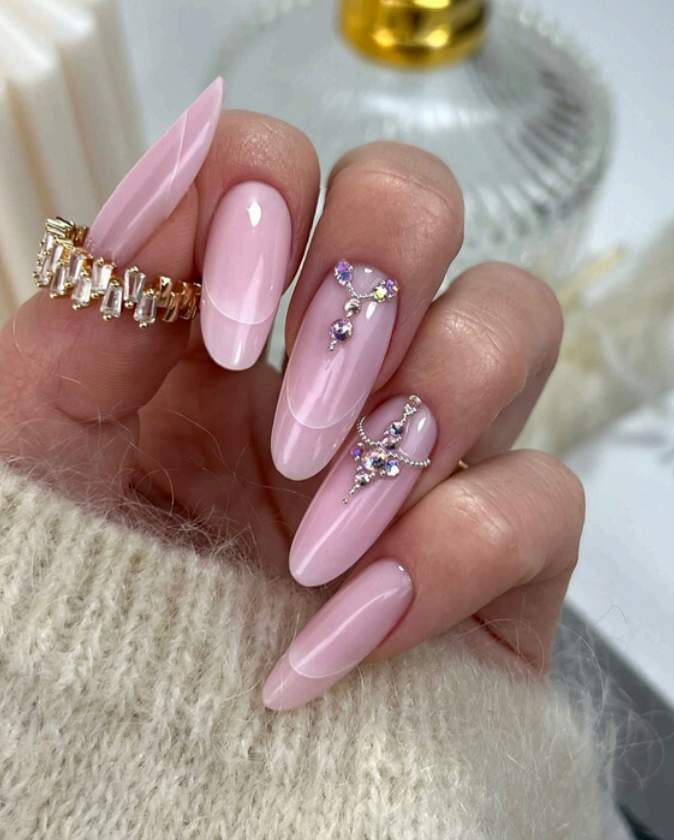- Paznokieć pokazowy – kwadrat + broszka z cyrkonii.