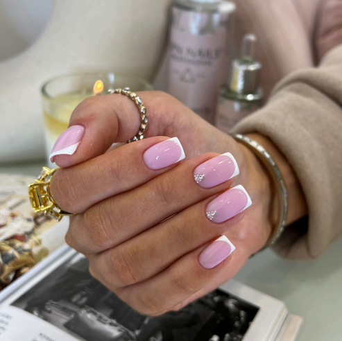Pokażę Ci, jak osiągnąć efekt najbardziej pożądanych paznokci w branży. Cieniutkich, estetycznych, z malowanym frenchem na mlecznej bazie z cyrkoniami – poezja.